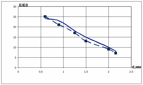 | Е/Е0 | 9 | 12 | 25 | 31 | 43 | 57 | 62 |
