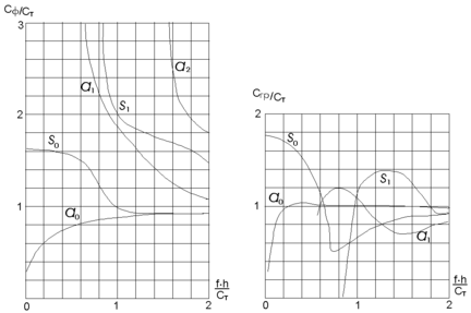 2. По номограммам (рис.1.2 и 1.3) рассчитать значение фазовых и групповых скоростей для стального образца (коэффициент Пуассона = 0,27) толщиной h=2мм, для частоты f = 2,5МГц. Вычислить углы падения, при которых возбуждаются эти моды. Результаты расчетов записать в табл.1.2