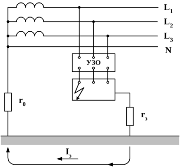 В сетях с глухозаземленной нейтралью и корпусами, имеющими отдельное заземление (система TT) обязательным согласно ПУЭ является применение устройств защитного отключения на дифференциальном токе (см. Приложение к сборнику лабораторных работ)