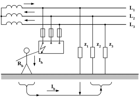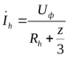 где Uф фазное напряжение сети, В; Rh, сопротивление тела человека, Ом; z комплекс полного сопротивления проводника относительно земли, Ом;