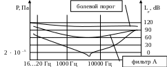 100 – 120 дБ – вызывает осязаемое движение базабанных перепонок, понижается острота слуха, зрения.