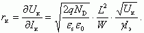 Рассчитаем для примера численное значение сопротивления коллекторного перехода rк при следующих параметров биполярного транзистора на основе кремния Si: ND = 1015 см-3; L = 0,1 мм; W = 30 мкм, Uк = 5В, Iэ = 1 мА, , εSi = 11,8.