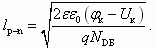 Для несимметричного p+-n перехода обедненная область локализована в слабо легированной части p-n перехода и ее ширина определяется