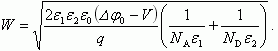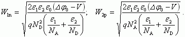 Полная ширина области пространственного заряда гетероперехода W, равная W = W1n + W2p, будет описываться следующим уравнением: