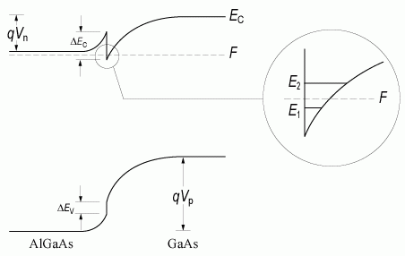 Гетеропереходом называют контакт двух полупроводников различного вида и разного типа проводимости, например, pGe - nGaAs. Отличие гетеропереходов от обычного p-n перехода заключается в том, что в обычных p-n переходах используется один и тот же вид полупроводника, например, pSi - nSi. Поскольку в гетеропереходах используются разные материалы, необходимо, чтобы у этих материалов с высокой точностью совпадали два параметра: температурный коэффициент расширения (ТКР) и постоянная решетки [18, 16, 19].