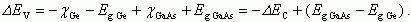 Из приведенных соотношений следует, что суммарная величина "пичка" ΔEC и "разрыва" ΔEV составляет