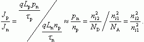 Для гетеропереходов типа pGe - nGaAs легко реализовать одностороннюю инжекцию, даже в случае одинакового уровня легирования в эмиттере pGe и базе nGaAs гетероперехода. Действительно, при прямом смещении отношение дырочной Jp и электронной Jn компонент инжекционного тока будет определяться отношением концентрации неосновных носителей: