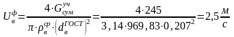 Уточняем скорость сетевой воды на участке головной магистрали (расчетный режим):