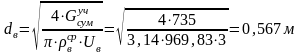 Принимаем скорость воды в трубопроводе Uв = 3 м/с.