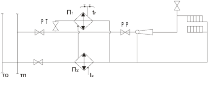Рис.1.6. Двухступенчатая последовательная схема присоединения системы ГВС