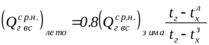 a – норма расхода горячей воды с t=60 0С на единицу измерения; m – количество единиц измерения; с – теплоемкость воды, 4190 Дж/(кгК); tг, tх – температура горячей и холодной воды; nc – расчетная длительность подачи воды на ГВС, сек./сут. или час./сут. Зимой принимают tх =5 0C, летом – tх =15 0C. Величина а дается для tг = 60 0C. При других значениях tх