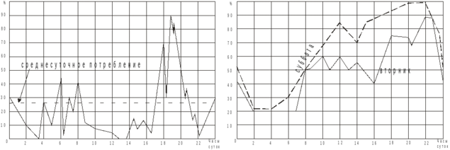 Нагрузка ГВС имеет существенно неравномерный характер как в течение суток, так и по дням недели. Наибольший расход горячей воды наблюдается в утренние и вечерние часы, из дней недели – в субботу.