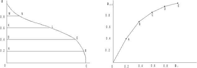 Если тепловая нагрузка обеспечивается из различных источников, то удобно пользоваться интегральным графиком. График продолжительности суммарной тепловой нагрузки делят на равные интервалы по оси ординат. a – относительная тепловая нагрузка. aс =