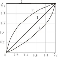 | 1 – качественное регулирование, m=0. 2 – качественно-количественное регулирование, 3,4 – количественное регулирование, m>1 |