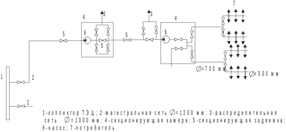 Рис.6.1. Однолинейная коммуникационная сеть двухтрубной тепловой сети
