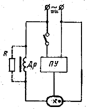 На рис. 3 показана принципиальная схема включения с поджигающим электродом. Последовательно с лампой включено балластное сопротивление, которое при работе на переменном токе представляет собой дроссель Др, а при питания от источника постоянного тока – резистор R (на схеме показан пунктиром). Необходимый для зажигания ламп высоковольтный и высокочастотный импульс напряжения создается специальным поджигающим устройством ПУ, отключаемым после зажигания лампы от сети. Возможны различные варианты решений этой принципиальной схемы включения ламп. В качестве примера приведем несколько вариантов схемы зажигания ламп с поджигающим электродом.