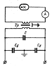 Все элементы высокочастотного контура должны быть максимально приближены к лампе. Для снижения потерь на ионизацию воздуха все токоведущие части установки, находящиеся под высоким напряжением, выполняются без острых углов. Допускается трансформатор ТВН располагать на некотором удалении от высокочастотного контура, однако этого делать по возможности не следует, поскольку увеличение длины проводов между ТВН и Ср, находящихся под высоким напряжением, приводит к повышению уровня помех, излучаемых в окружающее пространство. Это также нежелательно с точки зрения надежности и безопасности работы установки.