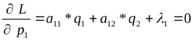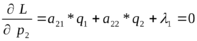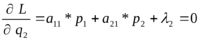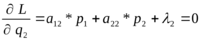 L=(a11*p1+a21*p2)*q1+(a12*p1+a22*p2)*q2+1*(p1+p2-1)+ 2*(q1+q2-1)