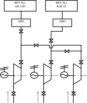 Принципиальная схема компрессорной установки, обеспечивающей сжатым воздухом доменную печь №1, показывает графически процесс получения сжатого воздуха компрессорной установки или компрессорной станцией. Здесь не показаны способы присоединения трубопроводов к арматуре и оборудованию, а также стенам и другим конструкциям здания.