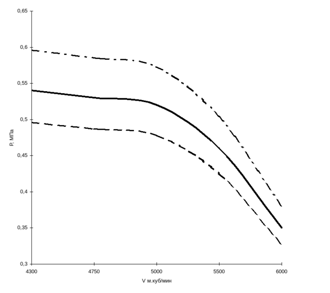 | Р/н ,МПа | 0,496 | 0,487 | 0,478 | 0,425 | 0,327 |