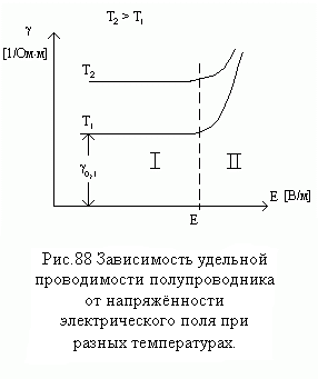 В сильных электрических полях нарушается пропорциональность между плотностью тока в полупроводнике и напряжённостью внешнего электрического поля