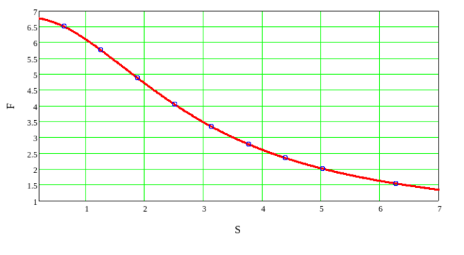 Для использования этой зависимости перестроим зависимость D = f(S) в другом виде: