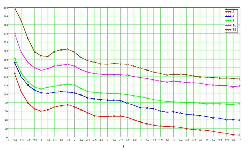 (2). Её значения при различных S заносим соответствующий столбец таблицы.