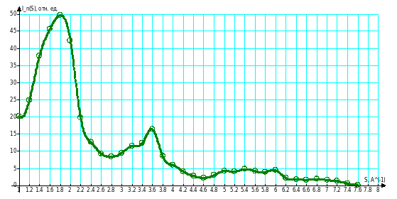 После определения масштаба производится измерение интенсивности дифракционных картин вещества с рассчитанным шагом по оси S. Получаемые зависимости представлены на рис.1.