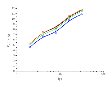 Для использования этой зависимости перестроим зависимость D = f(S) в другом масштабе: кривые почернения от времени в логарифмическом масштабе (рис.2).