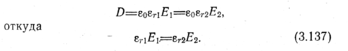 Действительно, смещение D в плоском конденсаторе постоянно во всем объеме диэлектрика; обозначая, как указано на рис. 3.47, для двухслойного плоского конденсатора Е1 и Е2 — напряженности в слоях 1 и 2 и εг1 и εг2 — диэлектрические проницаемости материала этих слоев, имеем согласно