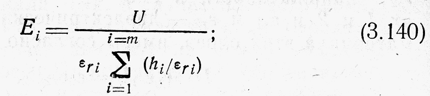 здесь U — полное напряжение; Еi, hi, εri — соответственно напряженность поля, толщина и диэлектрическая проницаемость для каждого отдельного слоя.