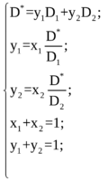 Для x1=75, x2=25 объемные доли y1=0,438 , y2=0,562.