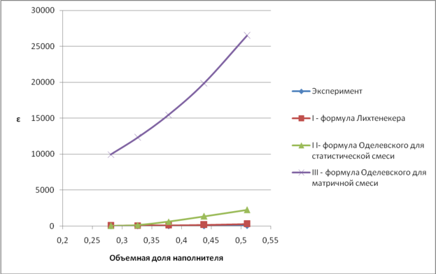 II. Расчет диэлектрической проницаемости композита по формуле Оделевского для статистической смеси.