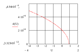 а Рис. 2 представлена энергетическая диаграмма, которая характеризует изгиб энергетических уровней при обратном смещении (U<0), что в свою очередь привело к увеличению потенциального барьера до величины Vb+U, где U – величина приложенного напряжения.