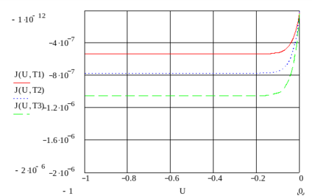 Т.е. обратная ветвь ВАХ с учетом генерационно-рекомбинационного тока имеет наклон.