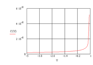 Барьерная емкость в данном случае может быть рассчитана как емкость плоского конденсатора, где ширина ОПЗ является расстоянием между обкладками, а материал выполняет роль диэлектрического наполнителя.