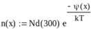 Построение зависимости распределения потенциала при T=300 K по формуле
