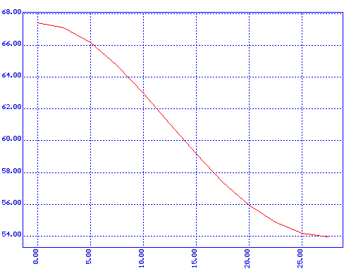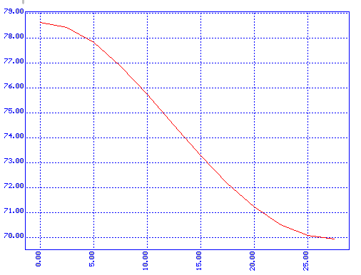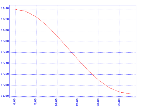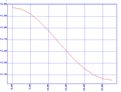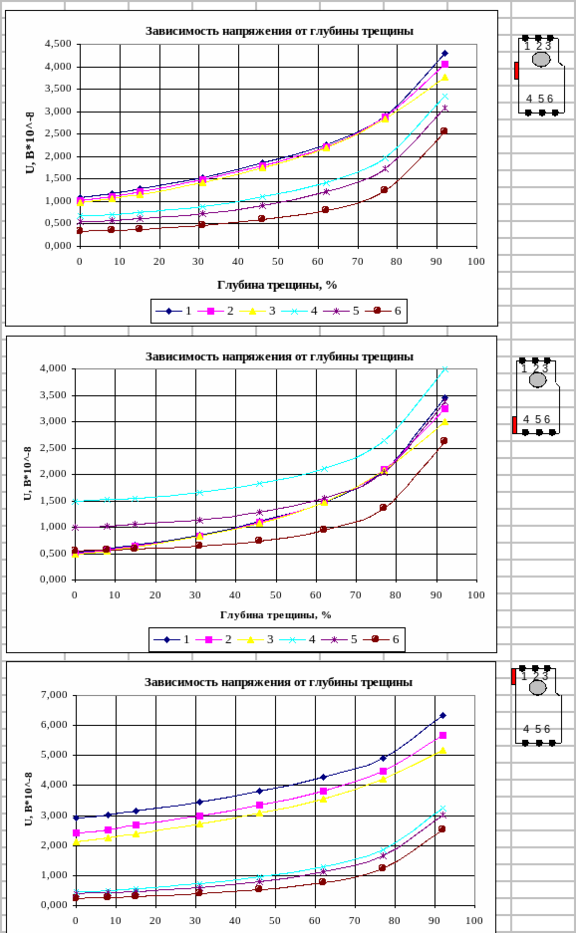 1) Для фиксированного положения токового и потенциального электродов (для центральных узлов левой и верхней границы соответственно) снять зависимость напряжения от глубины трещины.