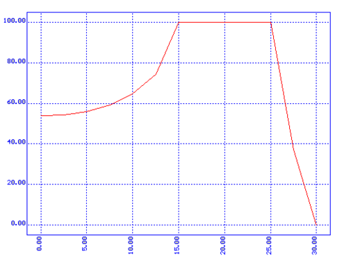 2) Для фиксированного положения токового электрода и глубины трещины (50% от максимально возможной) снять зависимость показаний вольтметра от координаты точки измерения потенциала на верхней границе области. Повторить при отсутствии трещины.
