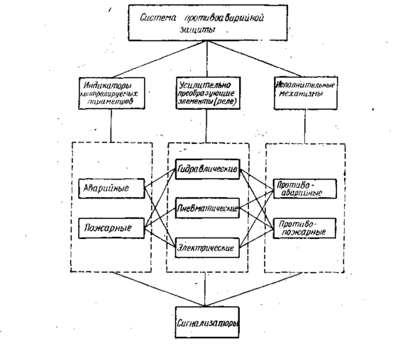 Неразрывная связь систем противоаварийной защиты с автоматическими системами управления технологическими процессами должна обеспечивать безопасную эксплуатацию всего оборудования. Несмотря на большое разнообразие систем противоаварийной защиты, они имеют общую структуру построения, которая включает: