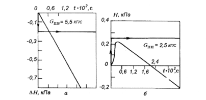 Кривая переходного процесса по уровню воды в барабане при возмущении расходом питательной воды для парогенератора(Gоп = 420 т/ч) приведена на рис. 12.7, а. Динамика этого же участка при возмущении расходом пара — на рис. 12.7, б. Выпуклая форма кривой изменения уровня при возмущении увеличением расхода пара объясняется тем, что в первый момент после нанесения возмущения уровень воды в барабане возрастает в результате резкого уменьшения давления пара. Это в свою очередь приводит к увеличению паросодержания в подъемных трубах циркуляционного контура и росту уровня. После того как давление пара в барабане примет новое установившееся значение, соответствующее новому значению расхода пара, изменение уровня будет протекать в соответствии с уравнением материального баланса (8.10). Рассмотренное явление носит название набухания или вспучивания уровня.