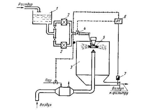 Автоматическое регулирование процесса распылительной сушки направлено на обеспечение получения кондиционного сухого продукта при максимальной производительности сушилки и минимальных энергетических затратах.