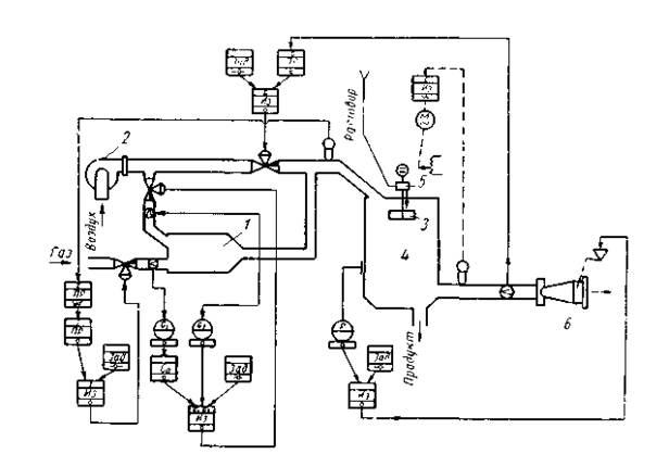 Нормальный режим горения в топочной камере поддерживается регулятором соотношения топливо — воздух, получающим импульсы по расходу газообразного или жидкого топлива и первичного воздуха и воздействующим на подачу первичного