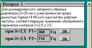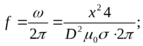 Для цилиндрического латунного образца диаметром D=25 мм с электрической проводимостью =14 МСм/м рассчитать рабочие частоты, соответствующие значениям обобщенного параметра контроля х=2,5 и 3,5.