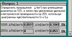 при увеличении диаметра на 10%, а затем при увеличении удельной электрической проводимости на 20%, используя диаграммы чувствительности