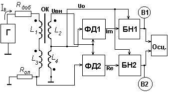 Функциональная схема лабораторной установки дана на рис. 1. При выполнение работы используется КП, фазометр типа Ф2−1, вольтметр типа В3−14, измерительный субблок, проходные преобразователи, набор образцов 201÷216 и устройство перемещения преобразователя.