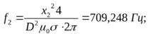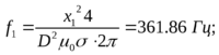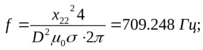 Для цилиндрического латунного образца диаметром D=25 мм с электрической проводимостью =14 МСм/м рассчитать рабочие частоты, соответствующие значениям обобщенного параметра контроля х=2,5 и 3,5.