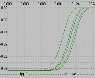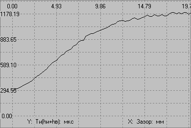 Указание. Зарисовать на одном листе ряд осциллограмм, соответствующих различным сечениям зазора. Для удобства обработки результатов эксперимента регулировать усиление осциллографа таким образом, чтобы максимальные значения импульсов напряжения, соответствующих различным значениям зазора, имели одинаковое значение и занимали не менее 3/4 экрана. Длительность импульсов tи отсчитывать на уровне 0,25 от максимального значения.