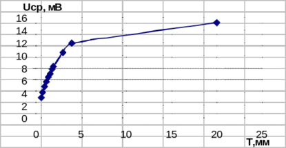 | Образец | Т, мм | Um, В | Uср, мВ |