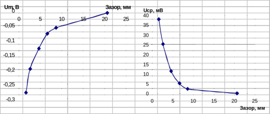 | Диэл. обр | Зазор, мм | Um, В | Uср, мВ |